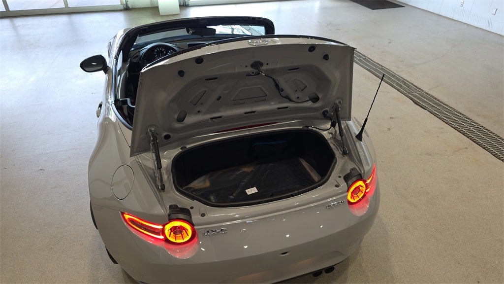 Menke Automotive is Pleased to offer this 2025 Mazda MX-5 Miata Club in Aero Gray Metallic, beautifully equipped with 4-Wheel Disc Brakes, 9 Speakers, ABS brakes, Air Conditioning, Alloy wheels, AM/FM radio: SiriusXM, AppLink/Apple CarPlay and Android Auto, Brake assist, Bumpers: body-color, Convertible roof wind blocker, Driver vanity mirror, Dual front impact airbags, Dual front side impact airbags, Electronic Stability Control, Emergency communication system: MAZDA CONNECT, Exterior Parking Camera Rear, Four wheel independent suspension, Front anti-roll bar, Front Bucket Seats, Front Center Armrest, Glass rear window, Heated front seats, Illuminated entry, Leather Shift Knob, Low tire pressure warning, Occupant sensing airbag, Outside temperature display, Panic alarm, Passenger vanity mirror, Power door mirrors, Power steering, Power windows, Radio data system, Rear anti-roll bar, Rear window defroster, Remote keyless entry, Speed control, Speed-sensing steering, Spoiler, Sport steering wheel, Steering wheel mounted audio controls, Tachometer, Telescoping steering wheel, Tilt steering wheel, Traction control, Trip computer, and Variably intermittent wipers!