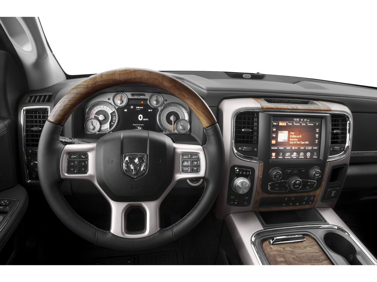 This vehicle Contains the following features and options: Quick Order Package 28M Laramie Limited (115V Auxiliary Power Outlet, 4-Corner Air Suspension, Auto High Beam Headlamp Control, Body Color Fender Flares, Body Color Front Fascia, Body Color Rear Bumper w/Step Pads, Bucket Seats, Folding Flat Load Floor Storage, Heated Front Seats, Heated Second Row Seats, Heated Steering Wheel, High Back Seats, Keyless Enter-N-Go, Laramie Limited Cluster, Laramie Limited Group, Laramie Limited Leather Bucket Seats, Leather Wrapped Grab Handle, Limited Badge, Luxury Door Trim Panel, Luxury Front & Rear Floor Mats, Power 10-Way Memory Driver & 6-Way Passenger Seats, Rain Sensitive Windshield Wipers, Ram 1500 Badge, Rear 60/40 Split Folding Seat, Rear Window Defroster, Remote Proximity Keyless Entry, Steering Wheel Mounted Audio Controls, Ventilated Front Seats, Wheels: 20 x 9 Aluminum Paint/Chrome Inserts, and Wood/Leather Wrapped Steering Wheel), Trailer Tow Mirrors & Brake Group (Class IV Receiver Hitch, Power Chrome Trailer Tow Mirrors, Trailer Brake Control, and Trailer Tow Mirrors), 10 Speakers, 20 x 9 Aluminum Polished/Gold Inserts Wheels, 4-Wheel Disc Brakes, ABS brakes, Adjustable pedals, Air Conditioning, Alloy wheels, AM/FM radio, Anti-Spin Differential Rear Axle, Audio memory, Auto-dimming door mirrors, Auto-dimming Rear-View mirror, Automatic temperature control, Brake assist, Center Hub, Compass, Delay-off headlights, Driver door bin, Driver vanity mirror, Dual front impact airbags, Dual front side impact airbags, Electronic Stability Control, Electronically Controlled Throttle, Emergency communication system, Front anti-roll bar, Front Bucket Seats, Front Center Armrest w/Storage, Front dual zone A/C, Front fog lights, Front reading lights, Front wheel independent suspension, Fully automatic headlights, Garage door transmitter, Genuine wood dashboard insert, Genuine wood door panel insert, Heated door mirrors, Heated front seats, Heated rear seats, Heated steering wheel, Illuminated entry, Leather Shift Knob, Leather steering wheel, Low tire pressure warning, Manufacturer's Statement of Origin, Memory seat, Navigation System, Occupant sensing airbag, Outside temperature display, Overhead airbag, Overhead console, Panic alarm, ParkView Rear Back-Up Camera, Passenger door bin, Passenger vanity mirror, Pedal memory, Power door mirrors, Power driver seat, Power Lumbar Adjust, Power passenger seat, Power steering, Power Sunroof, Power windows, Premium Filigree Leather Seats, Radio data system, Radio: Uconnect 8.4AN AM/FM/SXM/HD/BT/NAV, Rear anti-roll bar, Rear seat center armrest, Rear step bumper, Remote keyless entry, Security system, Speed control, Split folding rear seat, Steering wheel mounted audio controls, Tachometer, Tilt steering wheel, Traction control, Trip computer, Turn signal indicator mirrors, Variably intermittent wipers, Ventilated front seats, Voltmeter, and Wheels: 20 x 9 Polished Aluminum Forged.