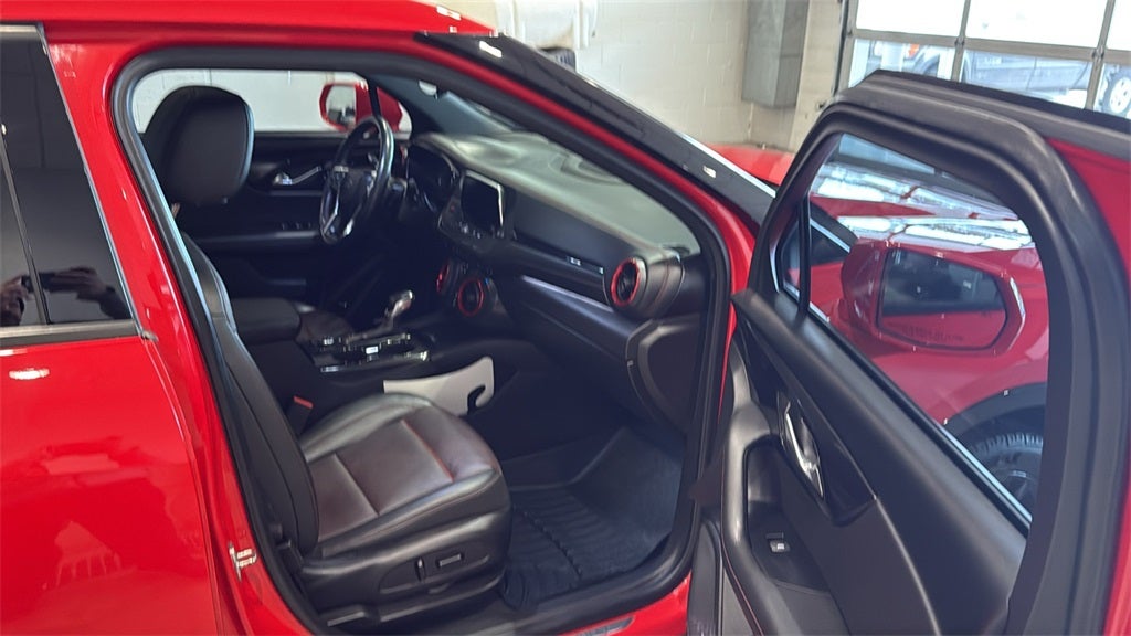 This vehicle Contains the following features and options: Sun & Wheels Package (Panoramic Tilt-Sliding Power Sunroof and Wheels: 21 Gloss Black Aluminum), 3.49 Final Drive Ratio, 4-Wheel Disc Brakes, 6 Speakers, 6-Speaker Audio System Feature, 6-Way Power Front Passenger Seat Adjuster, ABS brakes, Air Conditioning, Alloy wheels, AM/FM radio: SiriusXM, Apple CarPlay/Android Auto, Auto-dimming door mirrors, Auto-dimming Rear-View mirror, Automatic temperature control, Brake assist, Bumpers: body-color, Child-Seat-Sensing Airbag, Compass, Delay-off headlights, Driver door bin, Driver vanity mirror, Dual front impact airbags, Dual front side impact airbags, Electronic Stability Control, Emergency communication system: OnStar and Chevrolet connected services capable, Four wheel independent suspension, Front anti-roll bar, Front Bucket Seats, Front Center Armrest, Front dual zone A/C, Front reading lights, Fully automatic headlights, Garage door transmitter, Heated door mirrors, Heated Driver & Front Passenger Seats, Heated front seats, Heated steering wheel, High-Intensity Discharge Headlights, Illuminated entry, Knee airbag, Leather Shift Knob, Low tire pressure warning, Navigation System, Occupant sensing airbag, Outside temperature display, Overhead airbag, Overhead console, Panic alarm, Passenger door bin, Passenger vanity mirror, Perforated Leather-Appointed Seat Trim, Power door mirrors, Power driver seat, Power Liftgate, Power passenger seat, Power steering, Power windows, Radio data system, Radio: Chevrolet Infotainment 3 Plus System, Rear anti-roll bar, Rear reading lights, Rear seat center armrest, Rear window defroster, Rear window wiper, Remote keyless entry, Ride & Handling Suspension, Roof rack: rails only, Security system, Speed control, Speed-sensing steering, Split folding rear seat, Spoiler, Steering wheel mounted audio controls, Tachometer, Telescoping steering wheel, Tilt steering wheel, Traction control, Trip computer, Turn signal indicator mirrors, Variably intermittent wipers, Voltmeter, and Wheels: 20 Dark Android Machined-Face Aluminum.