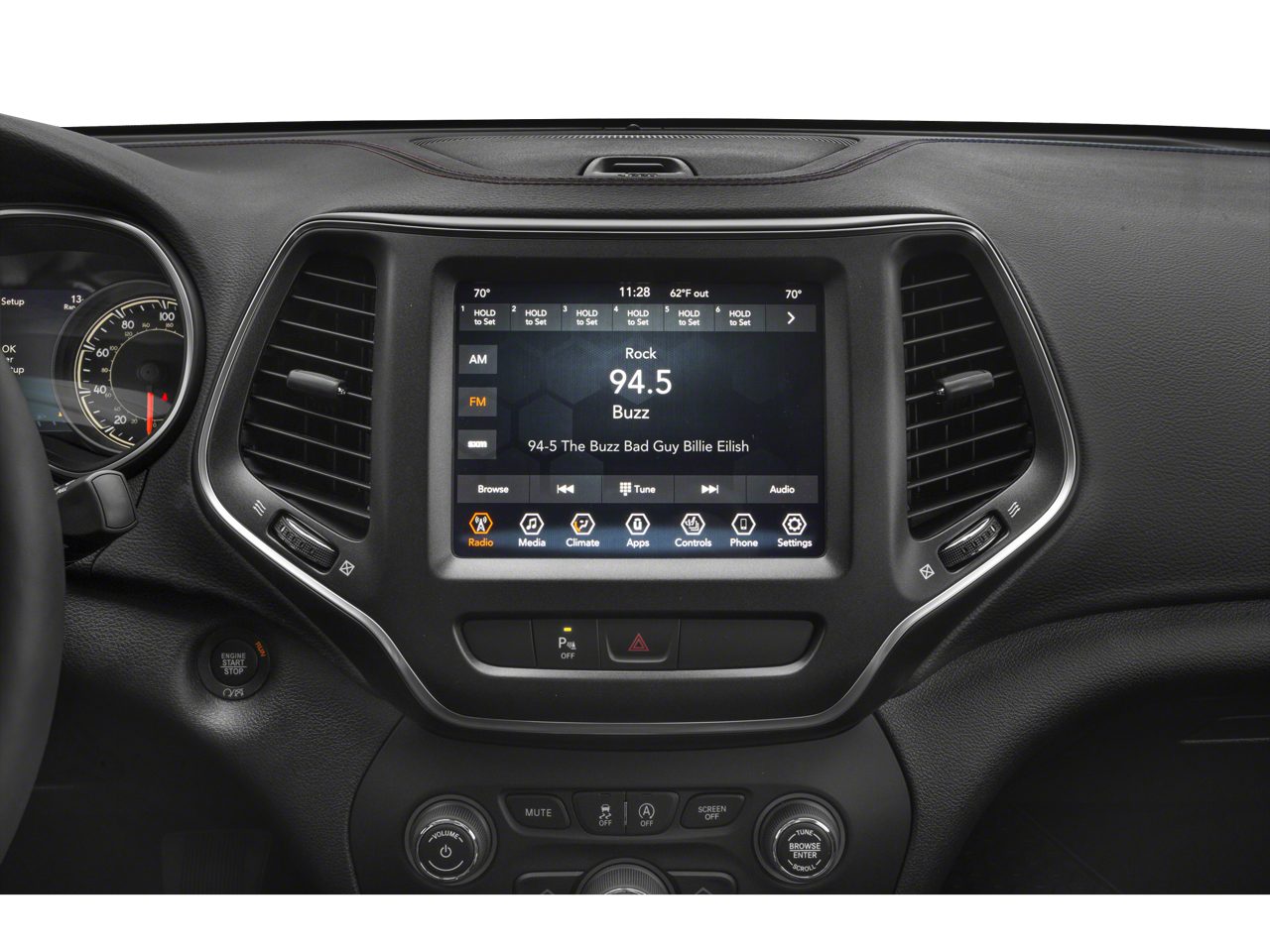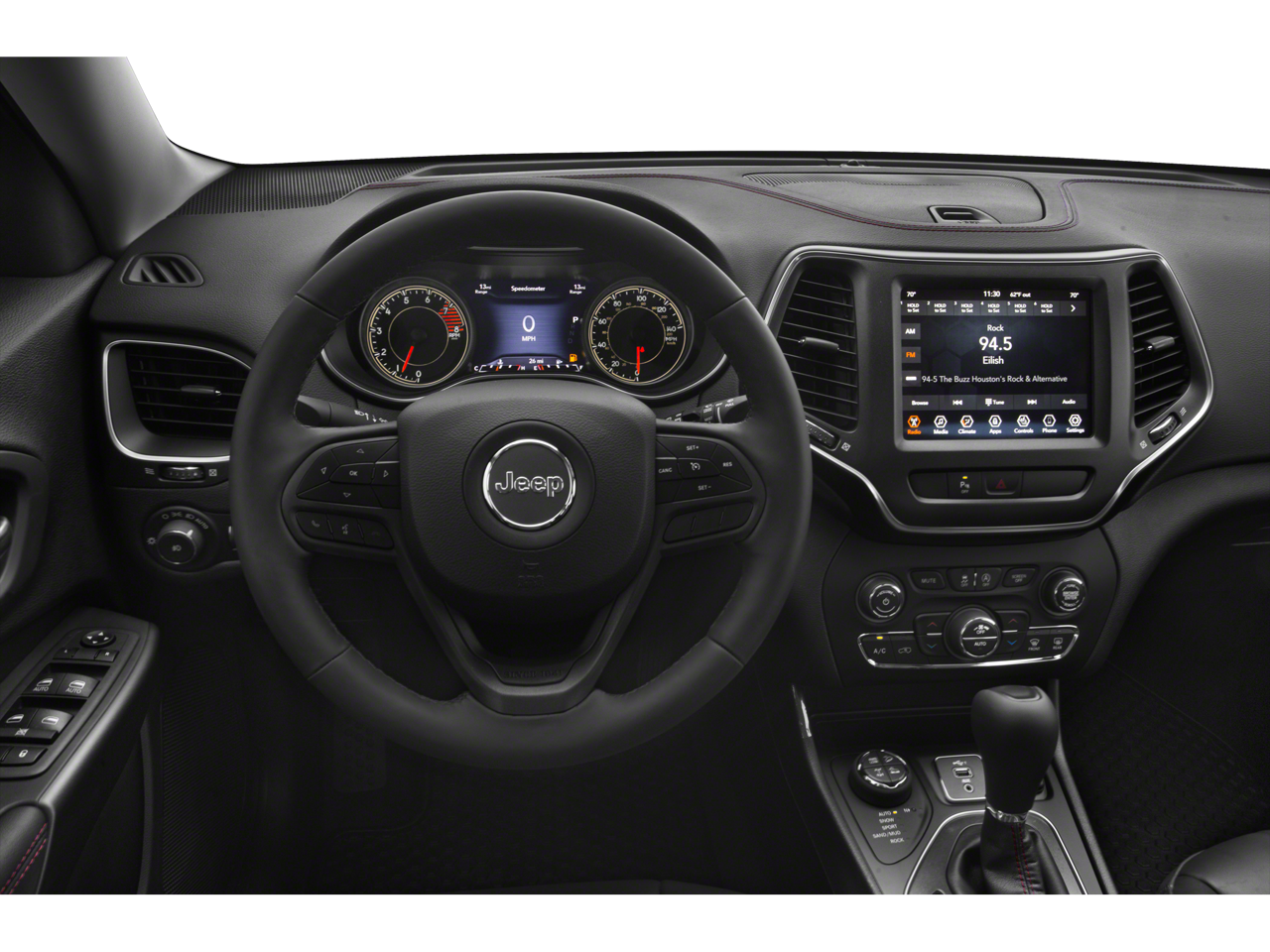 This vehicle Contains the following features and options: Quick Order Package 27L Trailhawk Elite (Auto-Dimming Rear-View Mirror, Exterior Mirrors w/Memory, Hands-Free Power Liftgate, Heated Front Seats, Heated Steering Wheel, Power Driver/Passenger 4-Way Lumbar Adjust, Power Front Driver/Passenger Seats, Premium Alpine Speaker System, Premium Leather Trimmed Bucket Seats, Radio/Driver Seat/Exterior Mirrors Memory, Remote Start System, Security Alarm, Tonneau Cover, Universal Garage Door Opener, Ventilated Front Seats, and Windshield Wiper De-Icer), Technology Group (Adaptive Cruise Control w/Stop & Go, Advanced Brake Assist, Auto High Beam Headlamp Control, Exterior Mirrors Courtesy Lamps, Exterior Mirrors w/Supplemental Signals, Full Speed Forward Collision Warning Plus, Lane Departure Warning Plus, Parallel/Perpendicular Park/Unpark Assist w/Stop, Rain Sensitive Windshield Wipers, and Side Distance Warning), Trailer Tow Group (7 & 4 Pin Wiring Harness, Auxiliary Transmission Oil Cooler, Class III Receiver Hitch, and Trailer Tow Wiring Harness), 3.517 Axle Ratio, 4-Wheel Disc Brakes, 6 Speakers, 8.4 Touchscreen Display, ABS brakes, Air Conditioning, Alloy wheels, AM/FM radio: SiriusXM, Anti-whiplash front head restraints, Apple CarPlay, Apple CarPlay/Android Auto, Automatic temperature control, AutoStick Automatic Transmission, Brake assist, Cloth/Premium Vinyl Bucket Seats, Compass, Delay-off headlights, Driver door bin, Driver vanity mirror, Dual Bright Exhaust Tips, Dual front impact airbags, Dual front side impact airbags, Electronic Stability Control, Engine Oil Cooler, Four wheel independent suspension, Front anti-roll bar, Front Bucket Seats, Front Center Armrest, Front dual zone A/C, Front fog lights, Front reading lights, Fully automatic headlights, Google Android Auto, GPS Antenna Input, Heated door mirrors, Hill Descent Control, Illuminated entry, Integrated Voice Command w/Bluetooth®, Knee airbag, Leather Shift Knob, Low tire pressure warning, Occupant sensing airbag, Off Road Suspension, Outside temperature display, Overhead airbag, Overhead console, Panic alarm, ParkView Rear Back-Up Camera, Passenger door bin, Passenger vanity mirror, Power door mirrors, Power driver seat, Power steering, Power windows, Radio data system, Radio: Uconnect 4 w/8.4 Display, Rear anti-roll bar, Rear reading lights, Rear seat center armrest, Rear side impact airbag, Rear window defroster, Rear window wiper, Remote keyless entry, Roof rack: rails only, SiriusXM Satellite Radio, Speed control, Speed-sensing steering, Split folding rear seat, Spoiler, Steering wheel mounted audio controls, Stop-Start Multiple VSM System, Tachometer, Telescoping steering wheel, Tilt steering wheel, Traction control, Trip computer, Turn signal indicator mirrors, USB Host Flip, Variably intermittent wipers, Voltmeter, and Wheels: 17 x 7.5 Painted/Polished Aluminum.