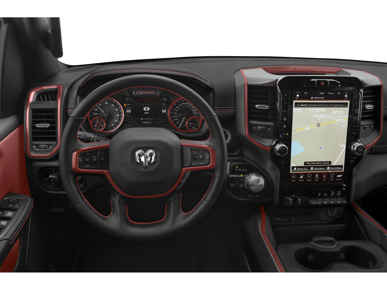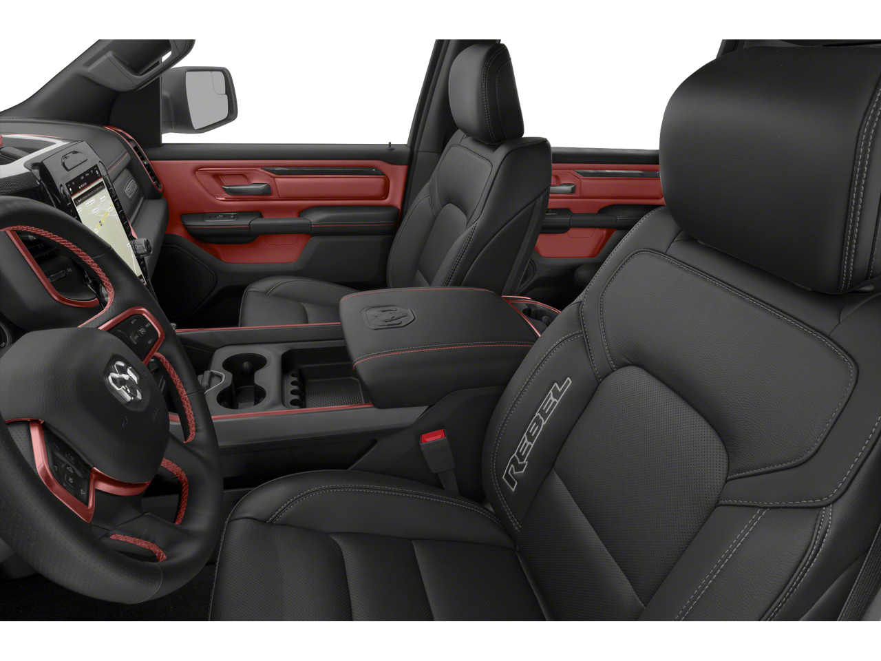 This vehicle Contains the following features and options: Quick Order Package 27W Rebel (Body Color Door Handles), Rebel Level 1 Equipment Group (Auto-Dimming Rear-View Mirror, Black Premium Power Mirrors, Foam Bottle Insert (Door Trim Panel), Heated Front Seats, Heated Steering Wheel, Power Adjustable Pedals, Radio: Uconnect 4 w/8.4 Display, Rear Dome w/On/Off Switch Lamp, Rear Window Defroster, Single Disc Remote CD Player, Sun Visors w/Illuminated Vanity Mirrors, and Universal Garage Door Opener), 1-Yr SiriusXM Guardian Trial, 12 Touchscreen Display, 3.92 Rear Axle Ratio, 33 Gallon Fuel Tank, 4 Way Front Headrests, 4-Wheel Disc Brakes, 48V Belt Starter Generator, 4G LTE Wi-Fi Hot Spot, 5-Year SiriusXM Traffic Service, 5-Year SiriusXM Travel Link Service, 6 Speakers, 9 Amplified Speakers w/Subwoofer, ABS brakes, Air Conditioning, Alloy wheels, AM/FM radio: SiriusXM, Apple CarPlay, Brake assist, Bucket Seats, Cloth/Vinyl Low Back Bucket Seats, Compass, Delay-off headlights, Disassociated Touchscreen Display, Driver door bin, Dual front impact airbags, Dual front side impact airbags, Electronic Stability Control, For Details, Visit DriveUconnect.com, Front anti-roll bar, Front Bucket Seats, Front Center Armrest w/Storage, Front fog lights, Front reading lights, Front Seat Back Map Pockets, Front wheel independent suspension, Full Length Upgraded Floor Console, Fully automatic headlights, Google Android Auto, GPS Antenna Input, GPS Navigation, HD Radio, Heated door mirrors, Illuminated entry, Integrated Center Stack Radio, Leather steering wheel, LED Footwell Lighting, Low tire pressure warning, Occupant sensing airbag, Outside temperature display, Overhead airbag, Overhead console, Panic alarm, ParkSense Front/Rear Park Assist w/Stop, ParkView Rear Back-Up Camera, Passenger door bin, Passenger vanity mirror, Power 4-Way Driver Lumbar Adjust, Power door mirrors, Power driver seat, Power steering, Power windows, Radio data system, Radio: Uconnect 12 w/Navigation, Radio: Uconnect 3 w/5 Display, Rear 60/40 Folding Seat, Rear anti-roll bar, Rear seat center armrest, Rear step bumper, Rear Wheelhouse Liners, Rebel Exterior Side Graphics, Rebel Hood Decal, Remote keyless entry, SiriusXM Satellite Radio, SiriusXM Traffic Plus, SiriusXM Travel Link, SiriusXM w/360L, Speed control, Split folding rear seat, Steering wheel mounted audio controls, Tachometer, Telescoping steering wheel, Tilt steering wheel, Traction control, Trailer Brake Control, Trip computer, USB Host Flip, Variably intermittent wipers, Voltmeter, and Wheels: 18 x 8 Painted BlacK.