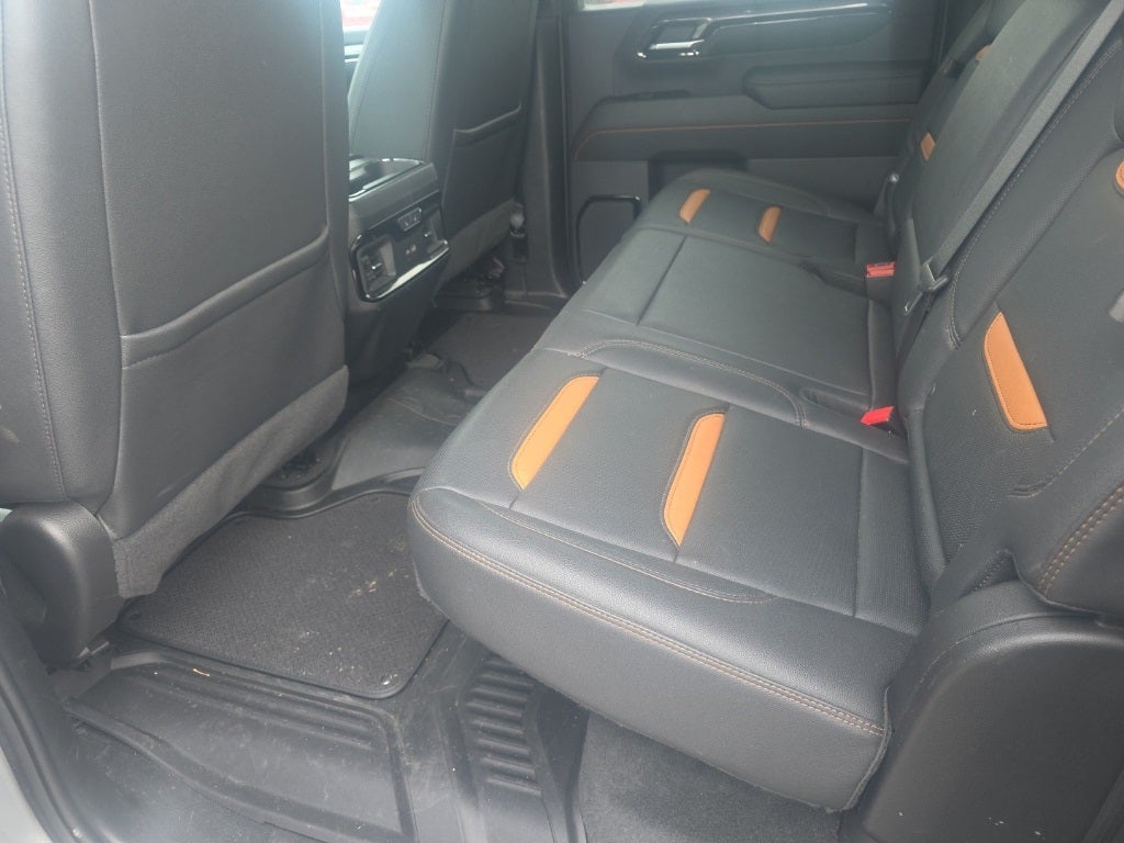 This vehicle Contains the following features and options: AT4 Preferred Package (Adaptive Cruise Control, LED Smoked Amber Roof Marker Lamps, Power Sliding Rear Window w/Defogger, and Universal Home Remote), Preferred Equipment Group 4SB (120-Volt Bed Mounted Power Outlet, 120-Volt Instrument Panel Power Outlet, 2 Charge-Only Rear USB Ports, 2 Charge/Data USB Ports Inside Center Console, 2 USB Ports, 2-Speed Active Transfer Case, Bed View Camera w/2 Trailer Camera Provisions, Bose Premium 7-Speaker Sound System, Deep-Tinted Glass, Electric Rear-Window Defogger, Floor-Mounted Center Console, Front Prem Floor Liners w/Removable Carpet Insert, Front Rain-Sensing Wipers, Gloss Black Header Grille & Grille Insert Bars, GMC Connected Access Capable, HD Surround Vision, Heated 2nd Row Outboard Seats, Heated Driver & Front Outboard Passenger Seats, Integrated Trailer Brake Controller, Keyless Open & Start, LED Cargo Area Lighting, Manual Tilt-Wheel/Telescoping Steering Column, OnStar & GMC Connected Services Capable, Power Front Passenger Windows w/Express Up/Down, Push Button Start, Rear Cross Traffic Alert, Rear Prem Floor Liners w/Removable Carpet Insert, Rear Wheelhouse Liners, Remote Vehicle Starter System, Safety Alert Seat, SiriusXM w/360L, Spray-On Bedliner w/AT4 Logo, Steering Wheel Audio Controls, Trailer Cam Provisions & Trailer Viewing Software, Trailer Side Blind Zone Alert, Ultrasonic Front & Rear Park Assist, Unauthorized Entry Theft-Deterrent System, Ventilated Driver & Front Passenger Seats, Wireless Charging, and Wireless Phone Projection), X31 Off-Road Package (Hill Descent Control), 10-Way Power Driver Seat Adjuster w/Lumbar, 10-Way Power Passenger Seat Adjuster w/Lumbar, 220-Amp Alternator, 3.73 Rear Axle Ratio, 4-Wheel Disc Brakes, 5th Wheel & Gooseneck Trailer Wiring Provisions, 7 Speakers, 700 Cold-Cranking Amps/70 Amp-hr Auxiliary Battery, ABS brakes, Air Conditioning, Alloy wheels, AM/FM radio: SiriusXM with 360L, Apple CarPlay/Android Auto, Auto High-beam Headlights, Auto-dimming door mirrors, Auto-dimming Rear-View mirror, Automatic Emergency Braking, Automatic temperature control, Black Front & Rear Molded Splash Guards (LPO), Brake assist, Buckle to Drive, Bumpers: body-color, Compass, Delay-off headlights, Driver door bin, Driver Memory, Driver vanity mirror, Dual front impact airbags, Dual front side impact airbags, Electronic Stability Control, Following Distance Indicator, Forward Collision Alert, Front anti-roll bar, Front Bucket Seats, Front Center Armrest, Front dual zone A/C, Front fog lights, Front License Plate Kit, Front Pedestrian Braking, Front reading lights, Front wheel independent suspension, Fully automatic headlights, Heated door mirrors, Heated front seats, Heated rear seats, Heated steering wheel, Heavy-Duty 80 Amp Battery, Hitch Guidance w/Hitch View, Illuminated entry, In-Vehicle Trailering System App, IntelliBeam Automatic High Beam On/Off, Lane Departure Warning System, Low tire pressure warning, Memory seat, Occupant sensing airbag, Off-Road Suspension, Outside temperature display, Overhead airbag, Overhead console, Panic alarm, Passenger door bin, Passenger vanity mirror, Perforated Leather-Appointed Front Seat Trim, Pickup Box, Power door mirrors, Power driver seat, Power passenger seat, Power steering, Power windows, Power-Retractable Black Assist Steps, Premium audio system: Premium GMC Infotainment System, Radio: AM/FM w/Premium GMC Infotainment System, Rain sensing wipers, Rear reading lights, Rear seat center armrest, Rear step bumper, Rear window defroster, Remote keyless entry, Security system, Speed control, Speed-sensing steering, Split folding rear seat, Steering wheel mounted audio controls, Tachometer, Telescoping steering wheel, Tilt steering wheel, Traction control, Trip computer, Turn signal indicator mirrors, Variably intermittent wipers, Ventilated front seats, Voltmeter, and Wheels: 20 High Gloss Black 8 Spokes