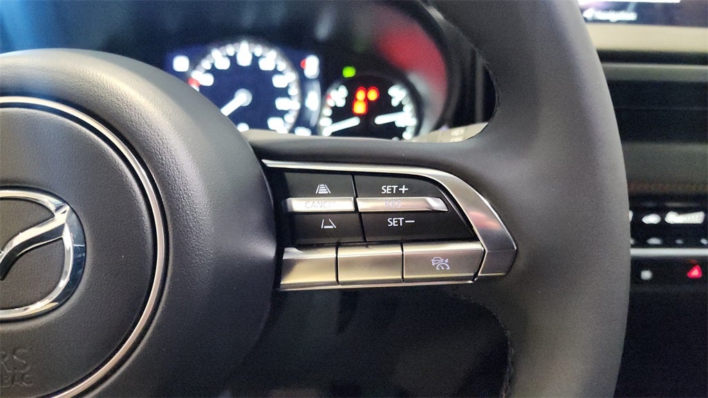 This vehicle Contains the following features and options: Cargo Package (Cargo Blocks), 12 Speakers, 4-Wheel Disc Brakes, ABS brakes, Air Conditioning, Alloy wheels, AM/FM radio: SiriusXM, AppLink/Apple CarPlay and Android Auto, Auto High-beam Headlights, Auto-dimming Rear-View mirror, Automatic temperature control, Brake assist, Bumpers: body-color, Carpet Cargo Mat, Delay-off headlights, Driver door bin, Driver vanity mirror, Dual front impact airbags, Dual front side impact airbags, Electronic Stability Control, Emergency communication system: MAZDA CONNECT, Exterior Parking Camera Rear, Front anti-roll bar, Front Bucket Seats, Front Center Armrest, Front dual zone A/C, Front reading lights, Front wheel independent suspension, Fully automatic headlights, Garage door transmitter: HomeLink, Heads-Up Display, Heated door mirrors, Heated front seats, Illuminated entry, Knee airbag, Leather Seat Trim, Leather Shift Knob, Leather steering wheel, Low tire pressure warning, Memory seat, Occupant sensing airbag, Outside temperature display, Overhead airbag, Overhead console, Panic alarm, Passenger door bin, Passenger vanity mirror, Polymetal Gray Metallic Paint Charge, Power door mirrors, Power driver seat, Power Liftgate, Power moonroof, Power passenger seat, Power steering, Power windows, Radio data system, Rain sensing wipers, Rear seat center armrest, Rear window defroster, Rear window wiper, Remote keyless entry, Retractable Cargo Cover, Speed control, Speed-sensing steering, Split folding rear seat, Spoiler, Steering wheel mounted audio controls, Tachometer, Telescoping steering wheel, Tilt steering wheel, Traction control, Trip computer, Turn signal indicator mirrors, Variably intermittent wipers, and Ventilated front seats.